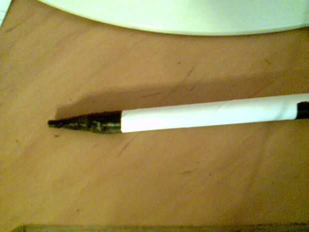 Tubo en la punta de la varita a varita de la cinta y cortar el exceso. Recuerda que vas a tener que mojar este fin en el agua para recargar varita así dejar algunos tubos al final si quieres. En este punto me gusta el resto de la vara, especialmente la punta con cinta aislante y pegamento caliente entonces varita diseños en el cuerpo de la varilla de la cinta. Ver primera foto de la página una foto de mi varita acabada.
