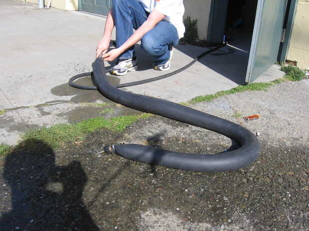 tornillo una manguera en el weenie. Gire la manguera. Abra el interruptor de flujo en el weenie. ver el weenie se llenan. (Nota: la cámara se reviente si se llena mucho. Nosotros hemos observado que la explosión de la cámara no es demasiado violenta, pero ser carfeul!)