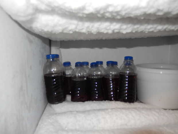 Después de agregar el ron y el coñac, utilice una jarra o taza con un pico y un embudo para llenar botellas de ½ para 2/3 completo. Coloque en el congelador. (Hombre, necesito descongelar esa cosa) Sacar del congelador unos 10 a 15 minutos antes de servir. Meter en una paja y añadir soda si lo desea (en la mayoría de las partes asistieron, los padres bebieron el granizado recta y acabado con los niños la soda). Si usted está tomando estos a parte de un amigo, tirar en una hielera y debe estar bien cuando llegue. La receta menciona una variación con la fruta de alcohol empapado. Esto estaría bien si usas botellas de boca ancha, pero no lo recomiendo si los frascos que utilizas tienen una pequeña abertura.