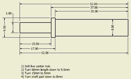 La parte más difícil es hacer el eje. Lo hice en el molino de chorro. Lo sentimos, no hay fotos, pero este fue mi primer proyecto en el torno, y no fue fácil :-/