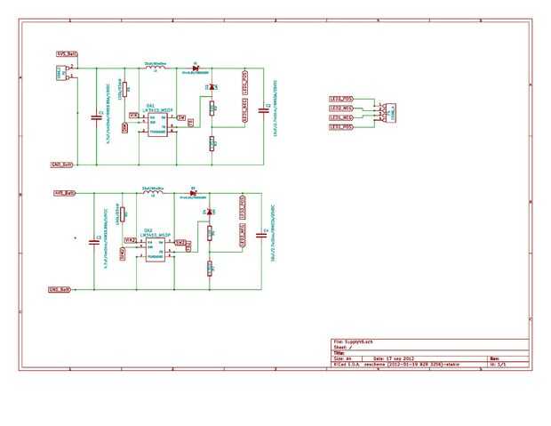 El circuito diseñado para el aguijón del escorpión contiene 2 que cada LM3410 LED IC chips. Cada LM3410 se potencia 2 cadenas de 5 LED en serie. Esto significa que cada LM3410 será fuente de 15 voltios a 200mA. Esto está bien dentro del límite teórico de la LM3410.