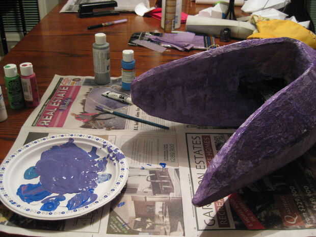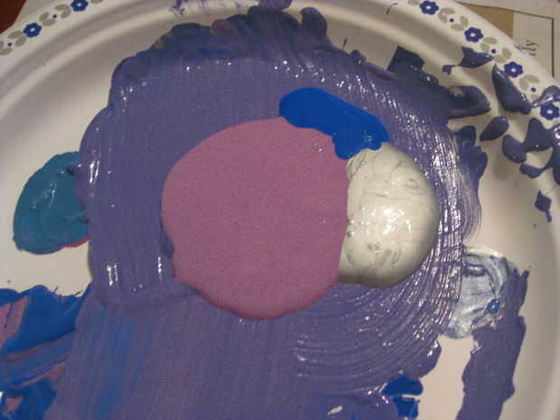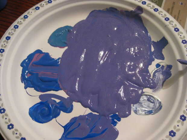 de todos modos Vierta una buena cantidad de su púrpura en su plato de papel o lo que tengas que poner tu pintura. y lentamente agregue pedacitos de la azul a la púrpura hasta conseguir un bonito oscuro rico púrpura.