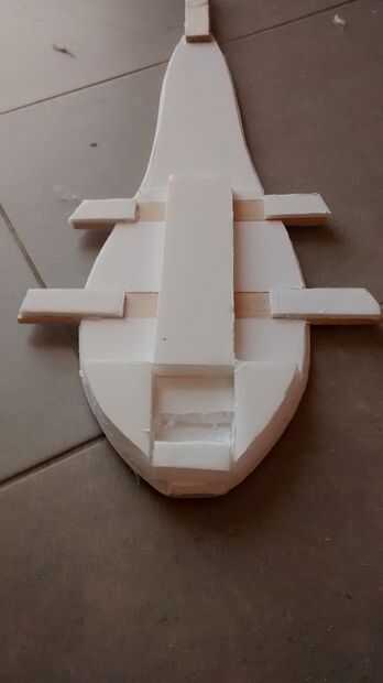 4. Ahora pegue 2 pedazos de Cadapack detrás de la parte central del cuerpo hasta la cola (a cortar y formar luego)