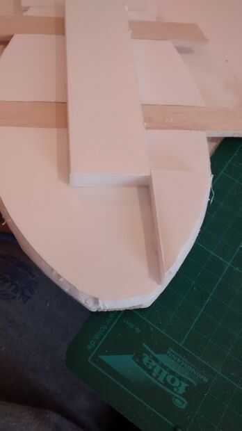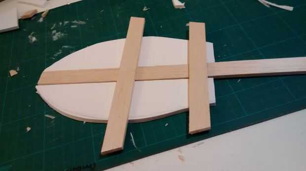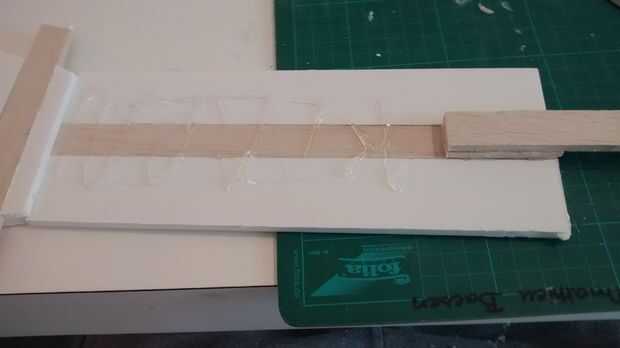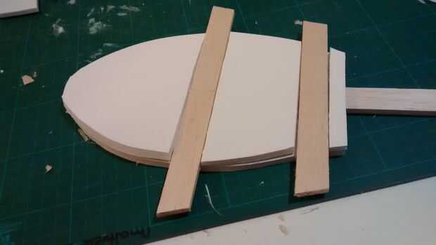 3. llenar los boquetes entre las 2 piezas de madera de balsa