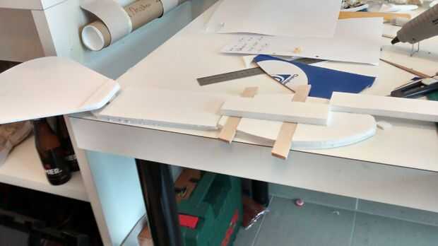 6. Añadir unos trocitos de Cadapack en el frente (crear un agujero espacio para llenar con peso para equilibrar el plano)