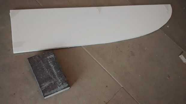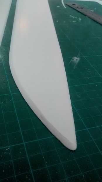 8. papel de lija la parte delantera de las alas otra vez, pero para crear un wingprofile redondo