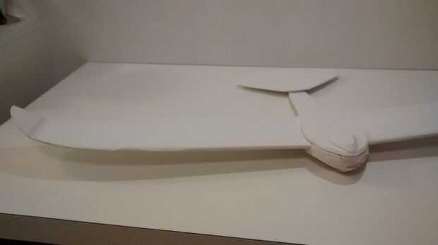 este instructable, inspirado por la proliferación de aviones de papel de tamaño micro, contiene instrucciones para la construcción de un planeador de miniatura de papel y una grapa. Tiene un fuselaje mide 40 milímetros, una envergadura de 60 milímetr