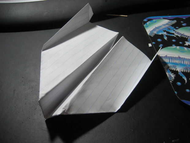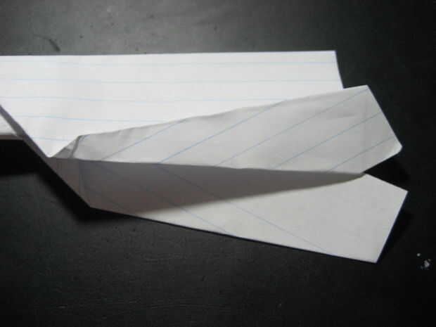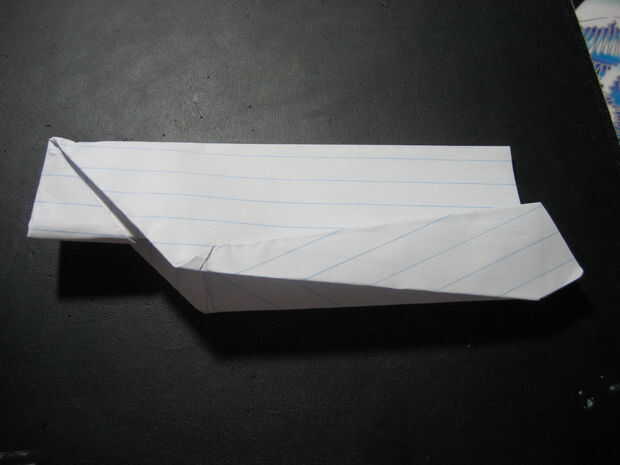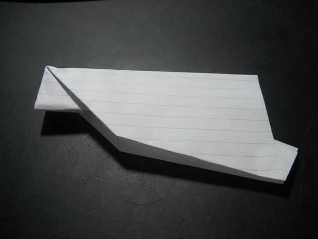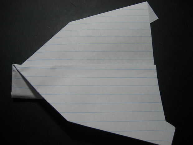 doble las alas hacia abajo, manteniendo el pliegue paralelo a la parte inferior del plano. el pliegue debe ser donde está la esquina
