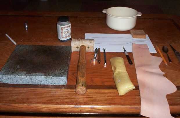 Pieza de 3/4 onza talla de cuero (la pluma grande necesita un pedazo de 3 pulgadas por 12 pulgadas. La pluma más pequeños necesita un pedazo de 2 1/2 por 7 pulgadas)
