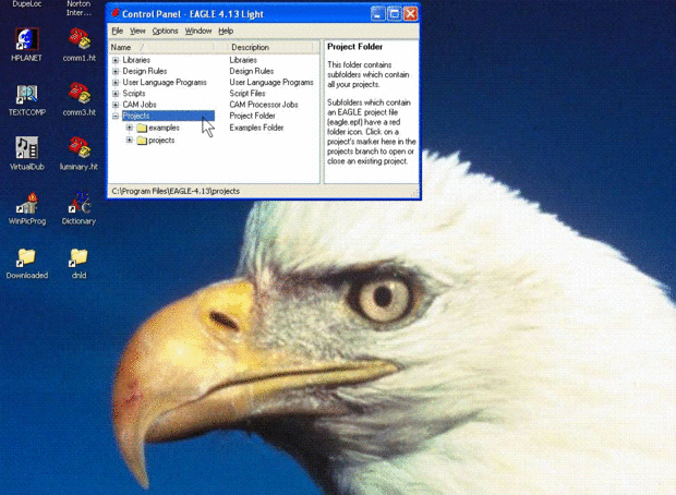 Verá una lista hacia abajo del borde izquierdo de la ventana. Haga clic en el + signos a la izquierda de la etiqueta de texto ampliará esa entrada. Haga clic en el + junto a los "proyectos" línea para expandirlo. Hice una nueva carpeta aquí para mis proyectos, y esa carpeta de ejemplos se suministra con el programa.