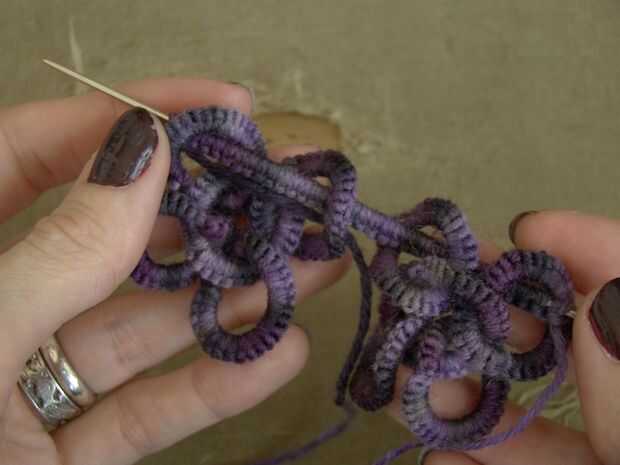 3. se comienza haciendo otro anillo, una vez que los puntos de sutura en la aguja de la armadura bajo el primer sistema de anillos como se muestra