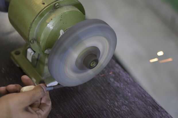 Empezar a pulir en un curso de muela en cuanto a forma una curva gradual. He dado los diámetros de sección transversal que se puede hacer exacta a las dimensiones han hecho pero no duro y rápido la regla. Sólo tienes que formar una aguja poco a poco adelgazamiento.