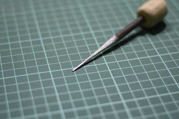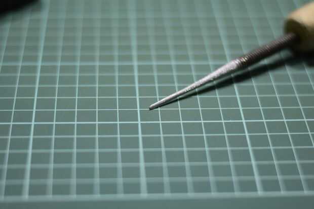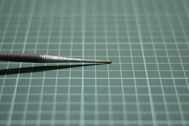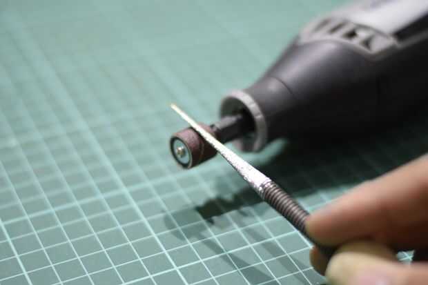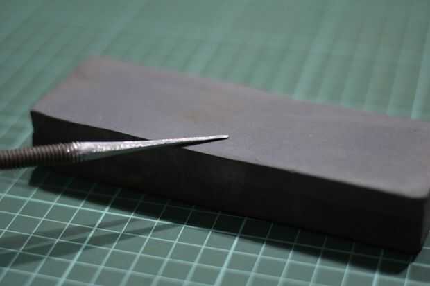 Una vez plana utilizar un fino accesorio de lijado para suavizar la superficie de la tierra. Después de utilice una piedra de afilar a la forma y afilar el borde formando una buena aguja plana como borde.