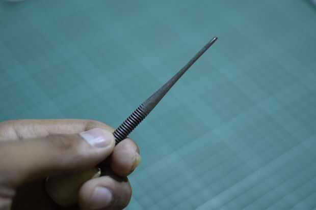 Entonces tenemos que aplanar el borde de la herramienta. Así que se fijar en un tornillo de banco y moler uniformemente de ambos lados en el borde pequeño para formar un extremo plano. Utilice despacio y tener cuidado ya que se trata de un borde sensible y puede obtener arruinado.