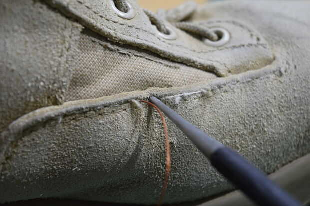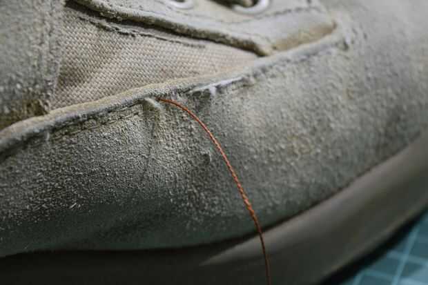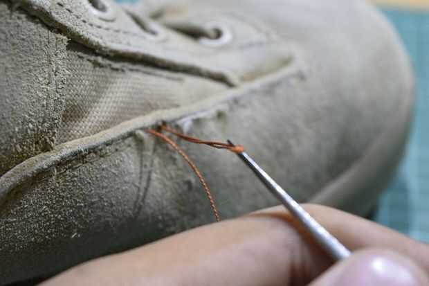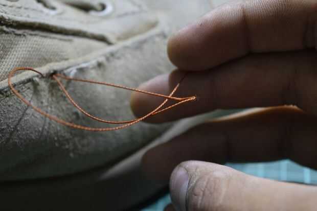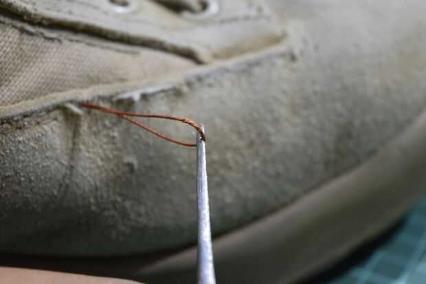 1. Inserte la aguja y gancho un bucle desde el otro lado. Sacar y quitar uno de los extremos de la cadena.