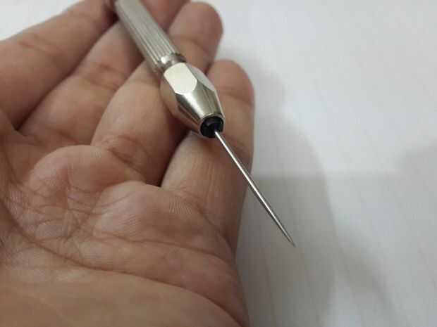 Hace algunos años tuve que reparar mis zapatos, pero la aguja de cuero estándar no era factible para usar desde el otro lado no era accesible está dentro del zapato. Así que se ocurrió esto. Es un simple perno se convirtió en una cara la aguja que pu