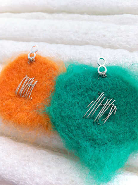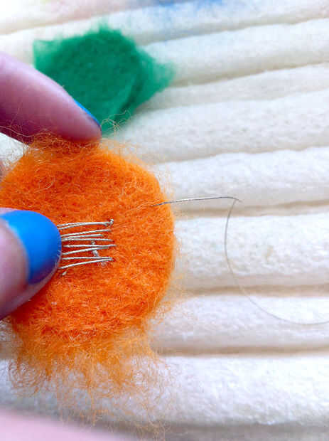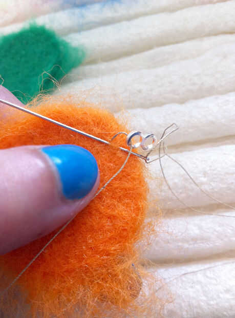 Deslice la aguja a través de un lado del anillo, manténgalo en lugar del disco para que al otro lado del anillo se pega hacia fuera, casi sobre el borde del disco y fijarlo con puntadas pequeñas. Mantener puntadas a través y alrededor del anillo hasta que sea seguro y cómodo para alojarse puesto pero un poco flexible por lo que se mueve con facilidad cuando usted lo usa.