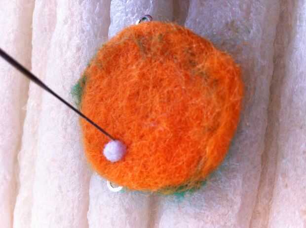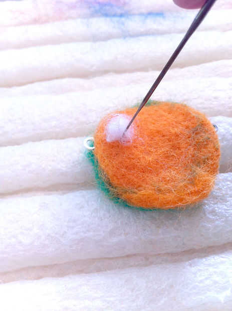 Tomar una pequeña brizna de fibra y rodar en una bola suelta. Ancla la bola al centro de la flor con unos toques suaves.