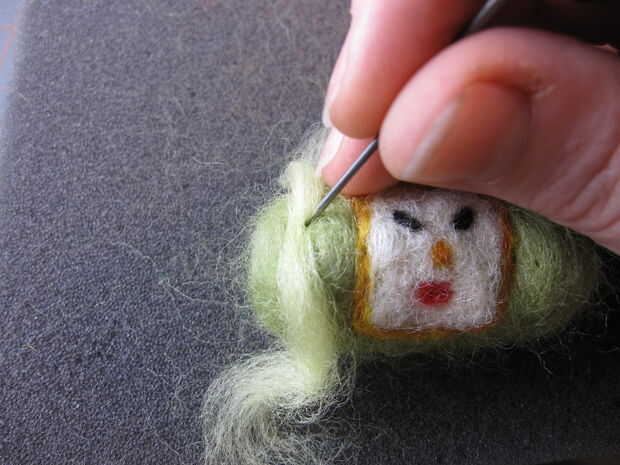 Añadir un mechón de vagueación kelly verde al final de la cabeza del príncipe, con una línea limpia en la parte más cercana a su rostro. Esta tira en el otro lado del espejo.