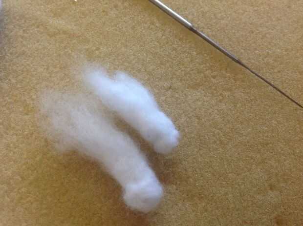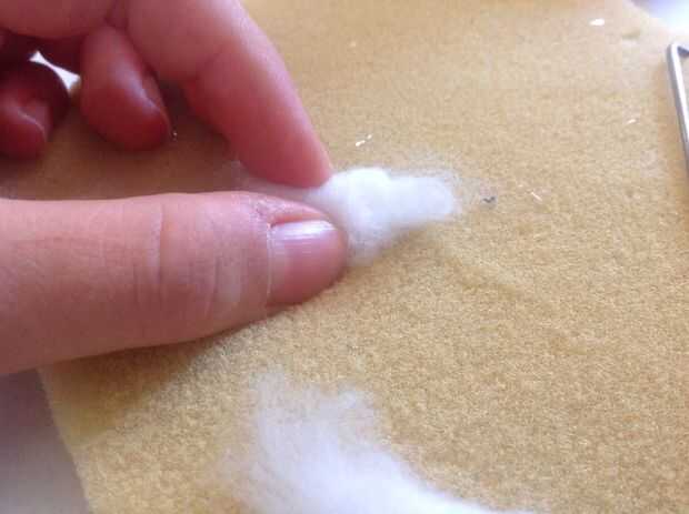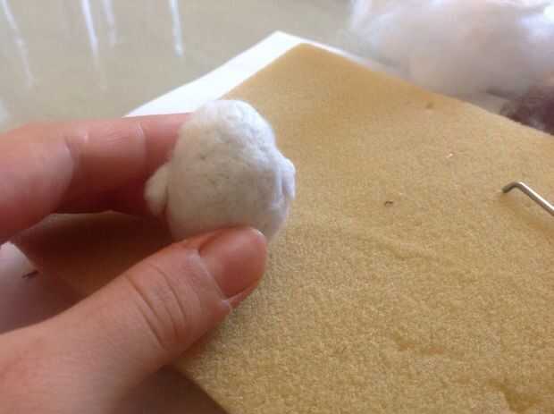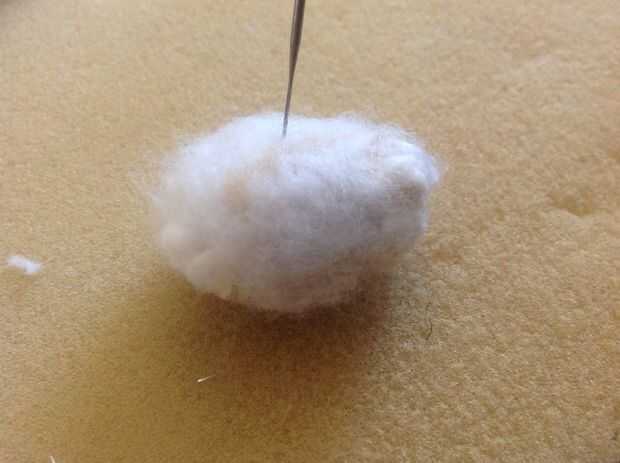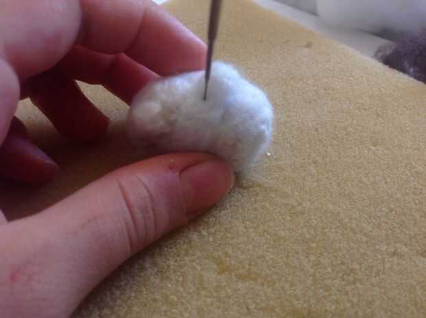 Empezar colocando lana blanca en la forma y meter la aguja hasta que totalmente cubierto y firme