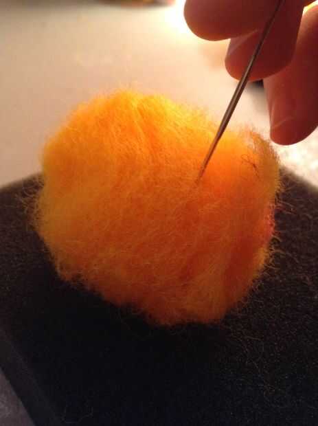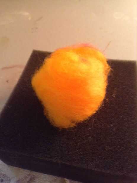 Tomar un trozo de su fieltro y rodar en una bola. Meter la bola, asegurándose de que ruede alrededor así que asoman por todas partes. Cuando se siente firme puede detener.