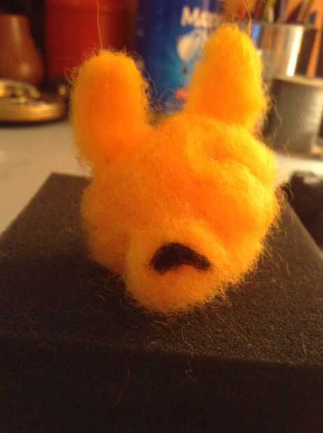 Hice un Pío de fieltro de aguja. Y lo que me inspiró para hacer un Pío es he ido a un montón de tiendas y he visto mucho peep de juguetes de peluche y yo quería hacer uno de mi propia. Sé como a fieltro de la aguja así que comencé a hacer un conejito