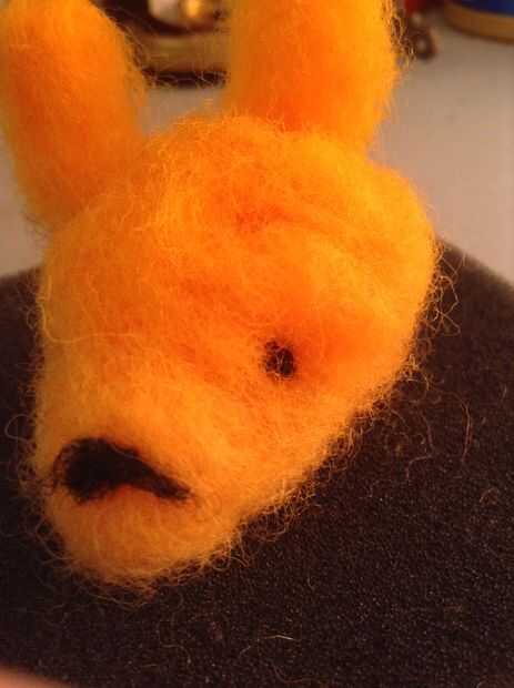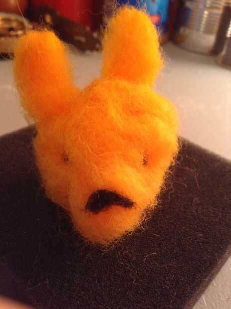Hice un Pío de fieltro de aguja. Y lo que me inspiró para hacer un Pío es he ido a un montón de tiendas y he visto mucho peep de juguetes de peluche y yo quería hacer uno de mi propia. Sé como a fieltro de la aguja así que comencé a hacer un conejito