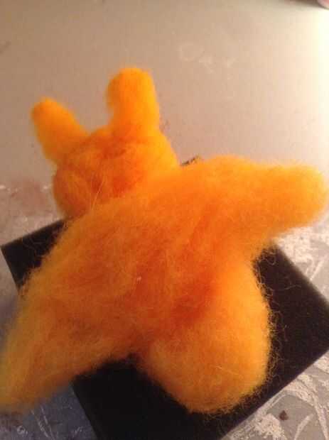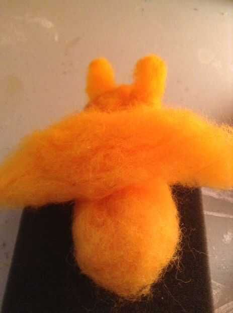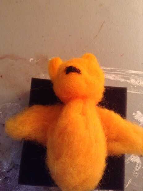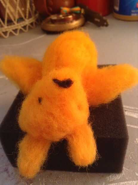 Hice un Pío de fieltro de aguja. Y lo que me inspiró para hacer un Pío es he ido a un montón de tiendas y he visto mucho peep de juguetes de peluche y yo quería hacer uno de mi propia. Sé como a fieltro de la aguja así que comencé a hacer un conejito