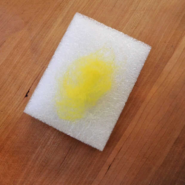 ¿Polillas, blanqueador o edad avanzada tiene a sus tejidos? Parche con fieltro!Al parecer tengo algunos blanqueadores sobre mi suéter donde destruyó los hilos y deshilachada en un agujero bastante grande. El suéter es uno de mis favoritos, así que de