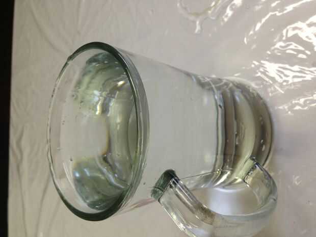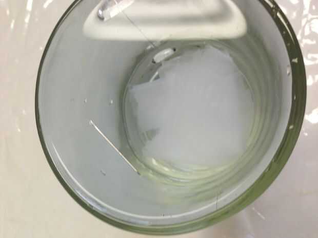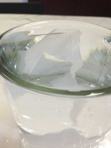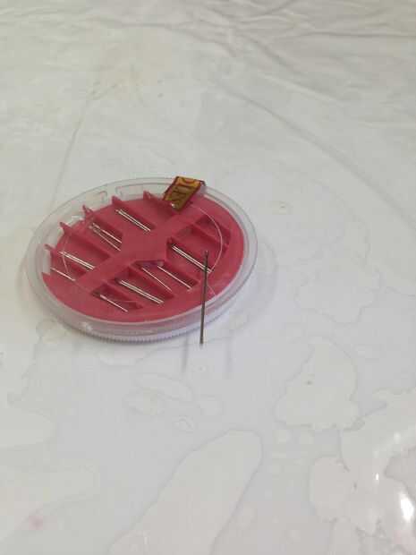 Usted verá el tejido hacia abajo, y la aguja va todavía flotando en la superficie del agua.