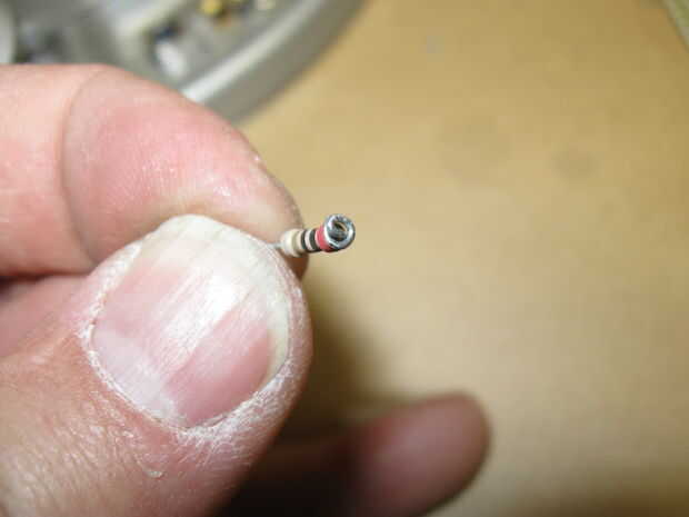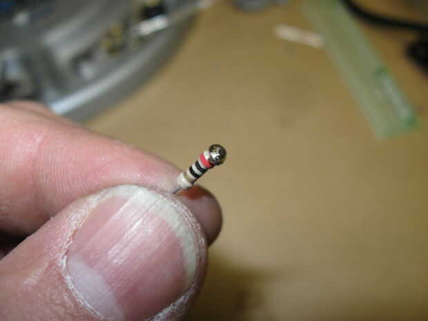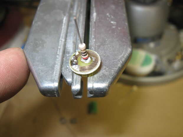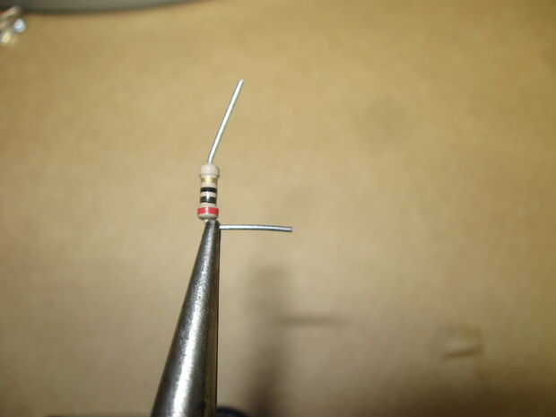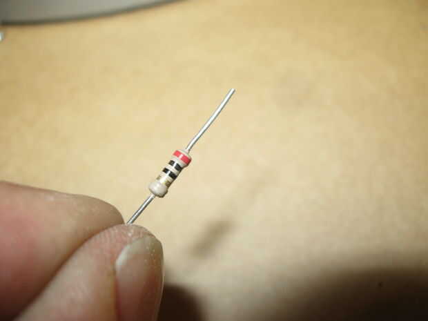 Para apoyar la resistencia agregar del encogimiento del calor tal como se muestra. en el lado del rastro de la pequeña placa de circuito.