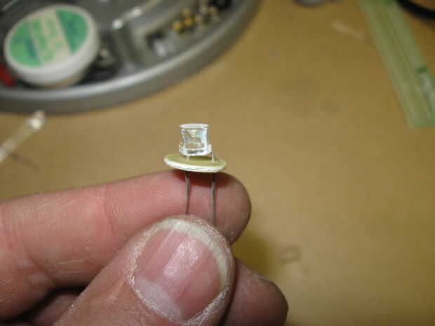 Antes de Asamblea corta la parte superior de la nueva LED con un Dermel corte disco como se muestra y deja nublado.