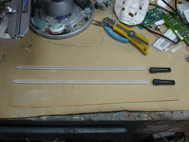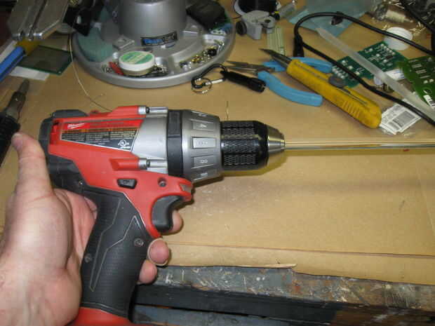 Deberás volver a colocar la varilla en el portabrocas y trabajar en la base. tendrá que ser formado para caber en la cabeza de la linterna y contra el corte LED. Esto está determinado por la reposición de los LED de circuitos actualizados en cabeza de la linterna.