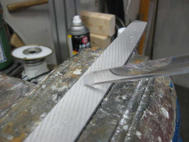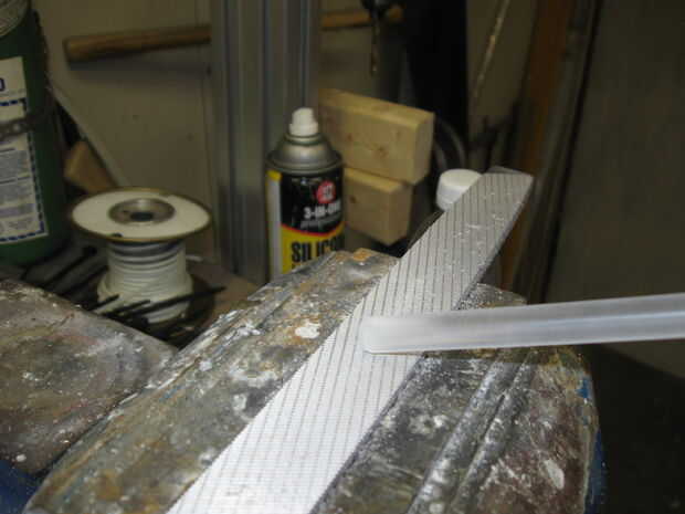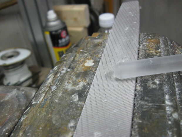 La barra de lucita necesita primero anotó y en forma con un archivo, luego con papel de lija luego con almohadilla scotch-brite para eliminar imperfecciones.