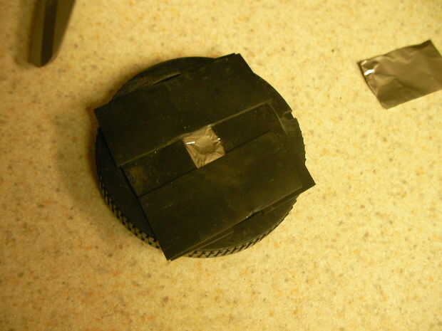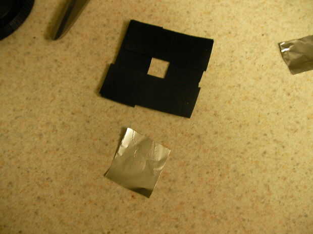 Nota: sé que cinta aislante y papel de aluminio no son más fuertes o más duradero de los materiales. Sin embargo, he seleccionado estos para su uso en este proyecto por varias razones. En primer lugar, bloquean la luz completamente. También el papel de aluminio es delgado (más delgado es mejor para fotografía estenopeica) y fácil de perforar. Y finalmente, esto es fácil de hacer y fijar nuevos agujeros de perno tuyo Haz dañado o para la experimentación.