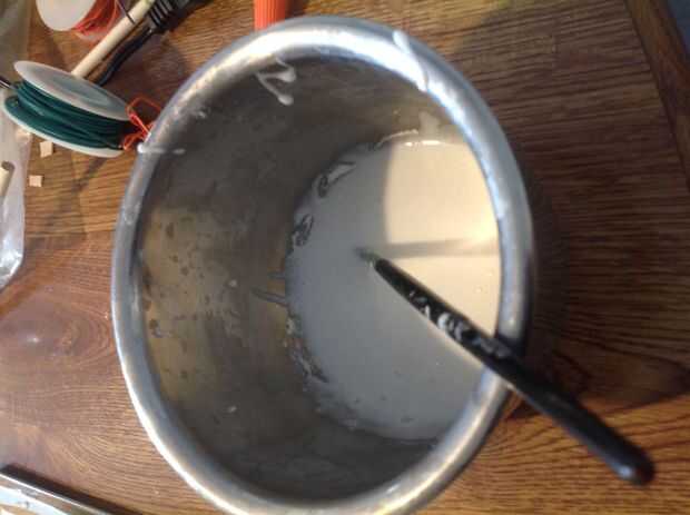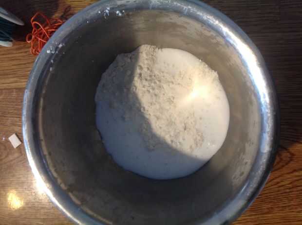 Añadir harina a la mezcla de pegamento y agua. Harina espesa cosas. Es una adición lógica.