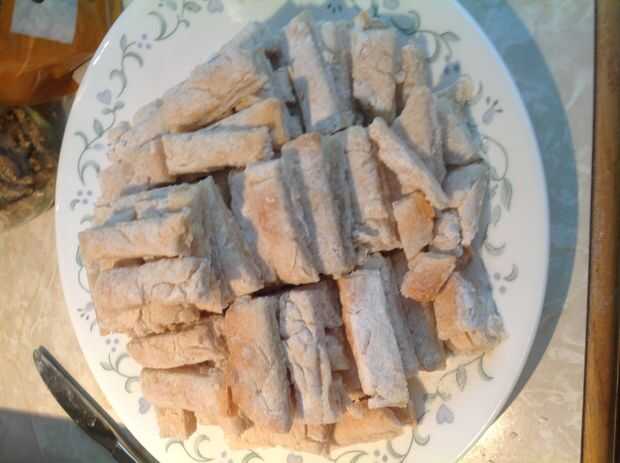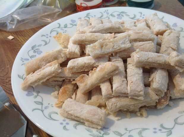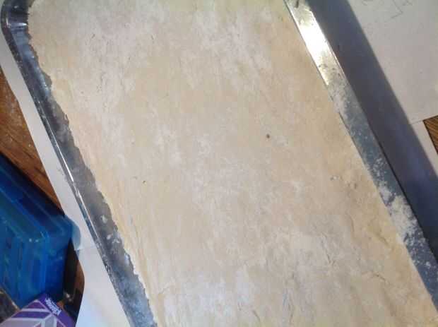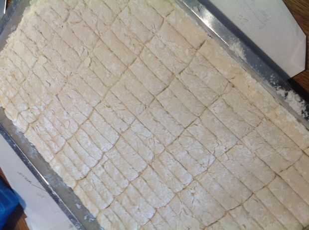 Estirar por lo que se ve realmente apetitoso. Cortar en rectángulos.