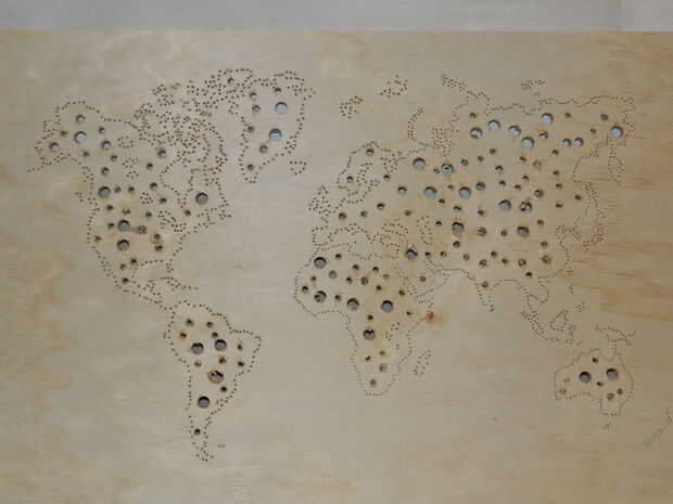 Esta es mi versión de un ´World de uñas y arte cadena mapa '.Paso 1: Lo que usted necesita Aquí es lo que necesita para este mapa del mundo:-madera contrachapada (o cualquier otra madera) (Asegúrese de que es menos de 1 cm de espesor)-cadena-uñas-mar