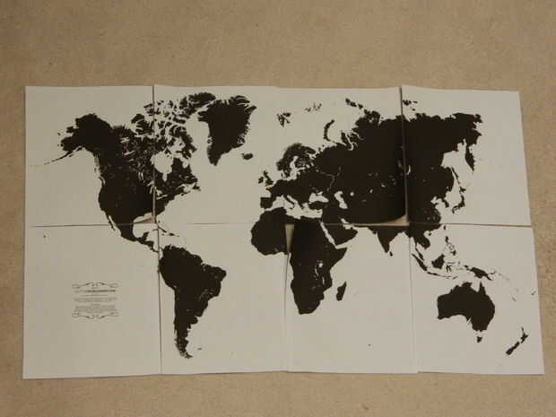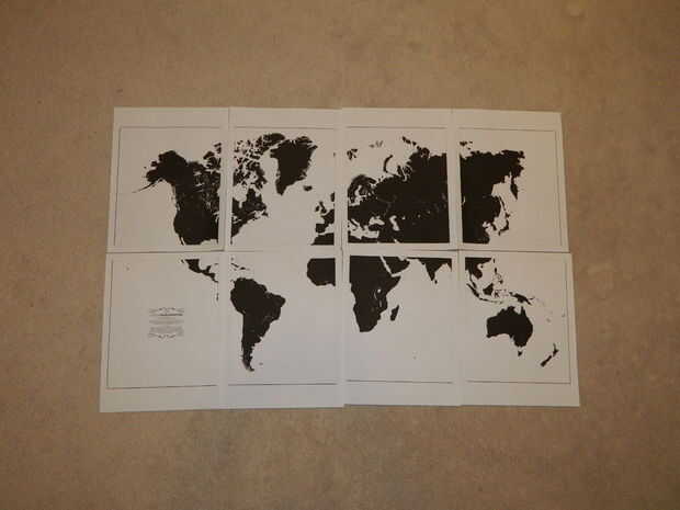 En primer lugar determinar cuánto desea que el mapa por hojas en blanco de separación de papel. He querido mío que páginas de unos 4 x 2 en el retrato, que traducido a la madera contrachapada de 31x21inch. A continuación seleccione el mapa de la opción. Este es el mapa usa (http://www.vectorworldmap.com/vectormaps/vector-world-map-v2.2-blank.gif). Para conseguir el mapa para caber en varias páginas siguen las instrucciones de este sitio (http://scottiestech.info/2009/08/08/how-to-easily-print-a-large-image-to-multiple-pages-in-windows/). Recortar los bordes para un ajuste más apretado.