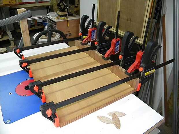 Para la 48cmX33cm de medidas base de trineo (19 X 13") y la valla (4cm/1½ alta). Había utilizado contrachapado de 18mm (3/4) para la base y la guía conjunta con cola y galletas.