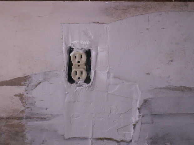 He quitado un calentador de zócalo e instalar un tomacorriente donde el calentador fue atado con alambre así que tuve que cortar un agujero en la pared.