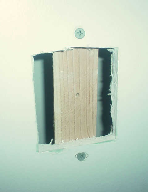 Ahora tiene una relativamente fuerte "placa de respaldo" para apoyar su yeso parche para que no caiga dentro del agujero.