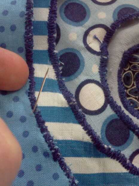 Cuando tengas el número de capas que desee, terminar los bordes de la forma de coser una puntada zig-zag apretada alrededor del borde. Use una aguja y la banda de rodadura o pegamento para tela para coser las capas juntas. Coser por el interior los bordes donde ya has cosido para ocultar estas nuevas puntadas. Para aplicar a la pieza, debe seguir los mismos pasos para cortar un orificio de tamaño adecuado en su ropa.