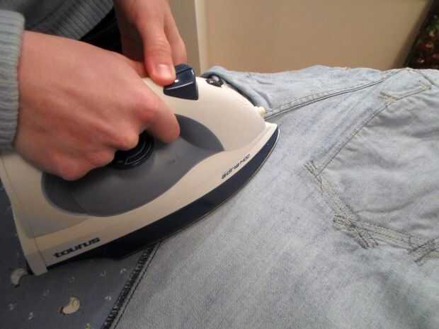- Coloque la plancha caliente sobre el parche y espere todo el pegamento se derrita. Como haces esto, correr sus dedos a lo largo de la superficie para verificar si la vena como golpes o bolsillos están presentes. Si es así, aplicar hierro caliente otra vez con algo de presión para eliminarlos.