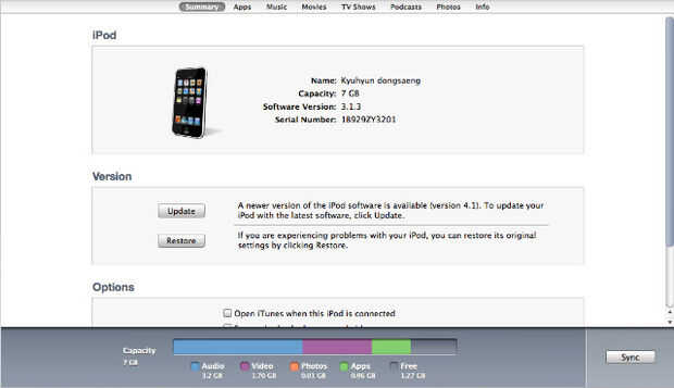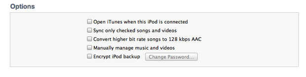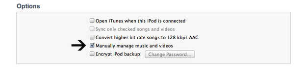 Que son las opciones disponibles para el iPod. Para sincronizar varios iPods a una cuenta de iTunes, seleccione gestiona manualmente la música y videos.