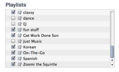 Desplácese hacia abajo hasta "Listas de reproducción", seleccione las listas de reproducción que desea se puede sincronizar con tu iPod. A pesar de que algunos de mis listas de reproducción pueden tener la misma canción, las canciones no aparece dos veces en tu iPod.