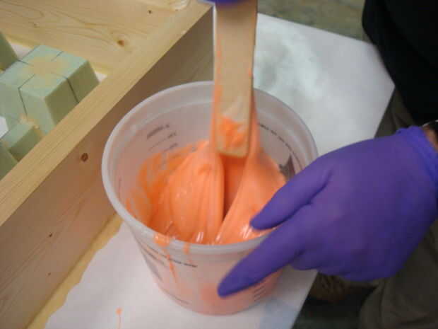 Puedes ver cómo se mezcla la silicona mirando el fondo de su taza de la mezcla. Si el color no es uniforme entonces usted necesita mantener la mezcla.
