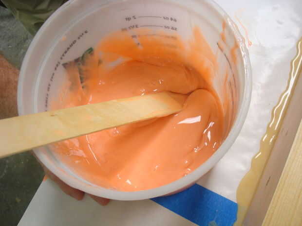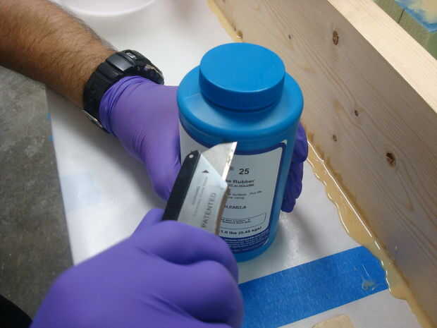 Marque su taza de mezcla graduado en las líneas con cinta para que pueda ver donde parar mirando dentro de la taza. Una vez que las piezas A y B de la Copa, utilice un palillo de mezcla para mezclar. No revolver la mezcla. Algo chatarra desde el exterior en que continuamente produce una mejor mezcla con menos burbujas de aire. Puede utilizar el agente de reducción de silicona para hacer la mezcla y verter más fácil. Asegúrese de utilizar la cantidad correcta siguiendo las instrucciones del fabricante.