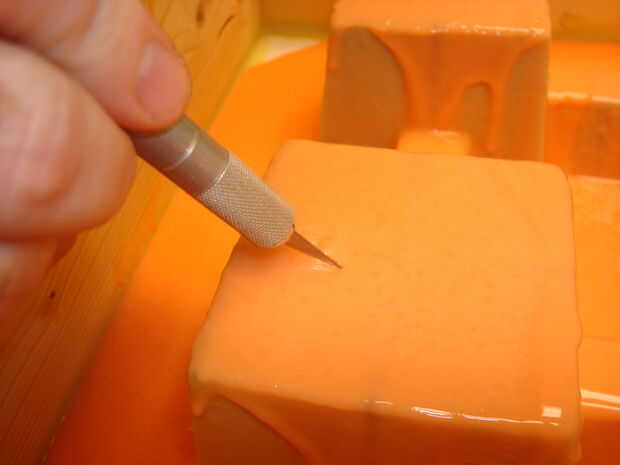 Cuando se mezcla la silicona para el segundo vertido, agregar pigmento un poco para cambiar el color de la silicona. Esto le permitirá ver donde el molde todavía puede ser fina y cómo incluso su cobertura. Utilice un poco de pigmento como un poco va una manera larga!