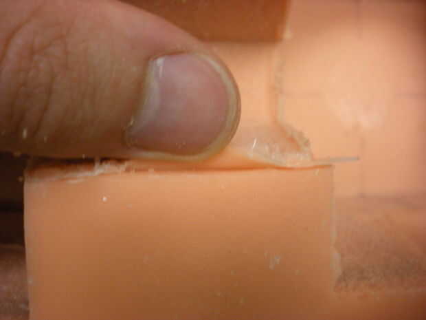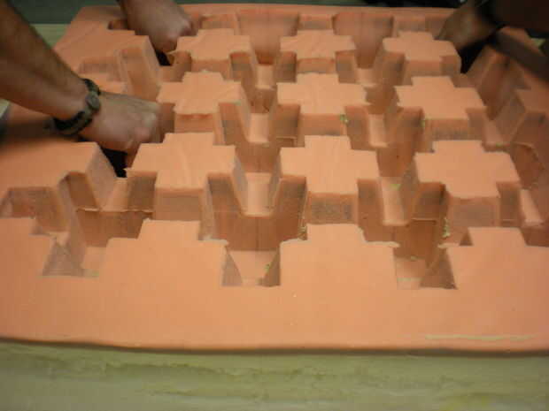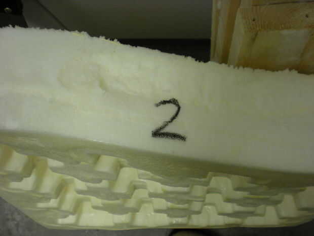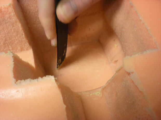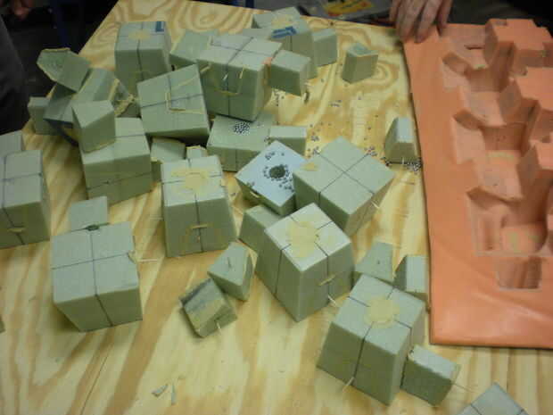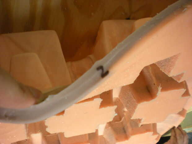 Una vez que el marco se ha eliminado completamente, retire con cuidado las piezas del modelo del molde. Si todo ha ido bien puede tirar el modelo ahora. El molde puede comenzar a salir de la concha de la madre (espuma), esto es aceptable. Una vez que el modelo ha sido completamente eliminado, número los correspondientes lados de la espuma y moldes que regresan juntos correctamente cuando usted comienza a hacer su reparto.